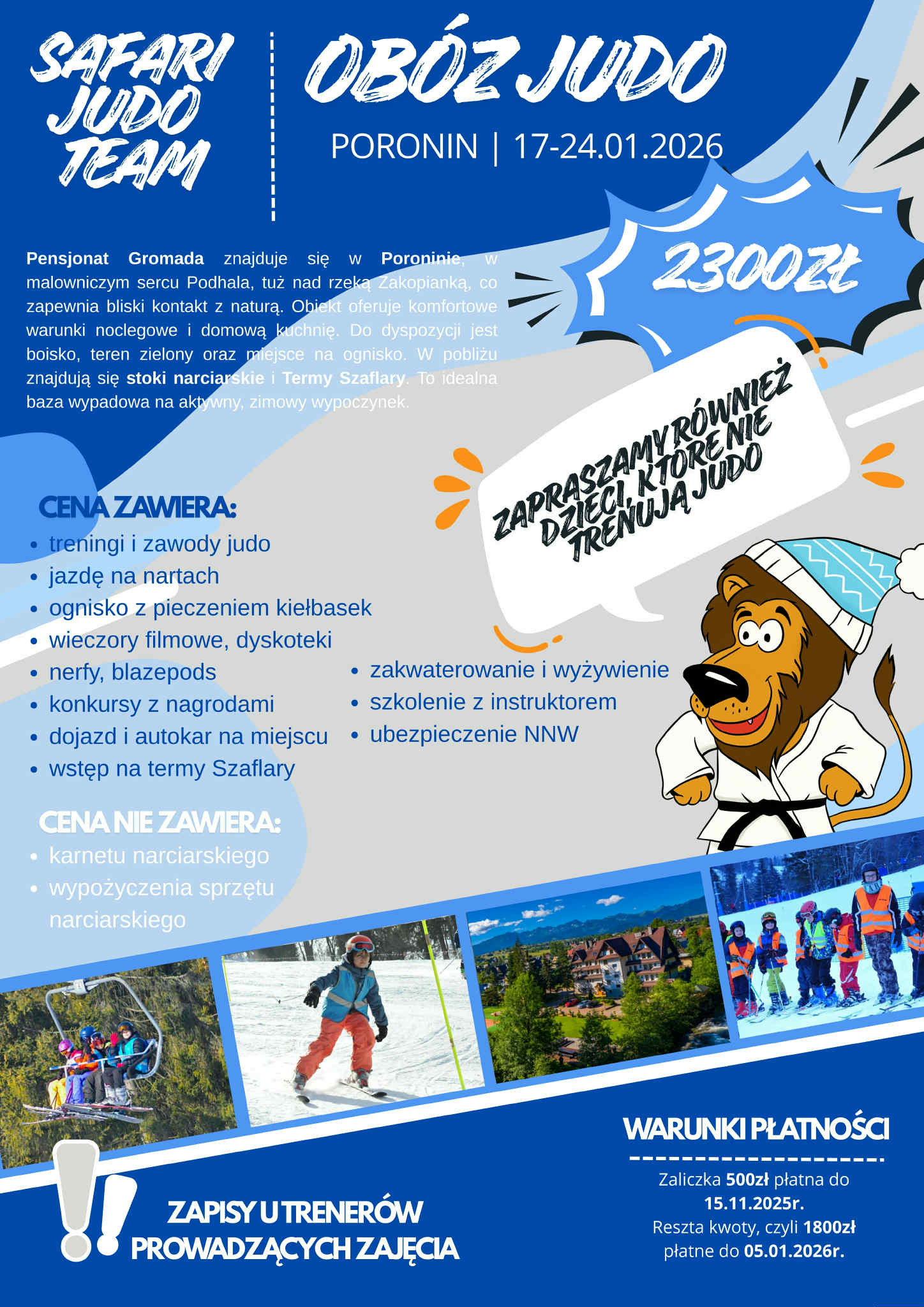 Zapraszamy na zimowy obóz judo w Poroninie 17-24.01.2026!!!